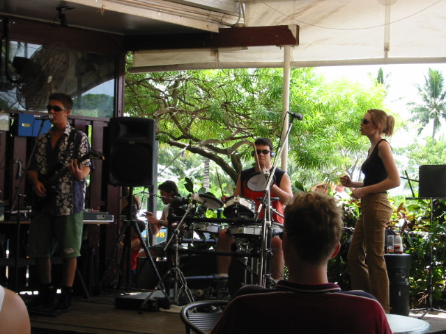 By this time, we were all starving and ready to get into Port Douglas. Martin found a place for lunch in Lonely Planet. It was called "The Old Court House" and was nicely situated on the corner of the Esplanade and the main street in Port Douglas. There was a three-person band in the pub-restaurant, so we settled in to order lunch and to listen to the band. They were actually pretty good, too. We enjoyed the music they were playing, and the guitar player was very talented (in my unprofessional opinion). Lunch was OK, but we didn't care. We were just happy to sit around and listen to the good music for a long time.