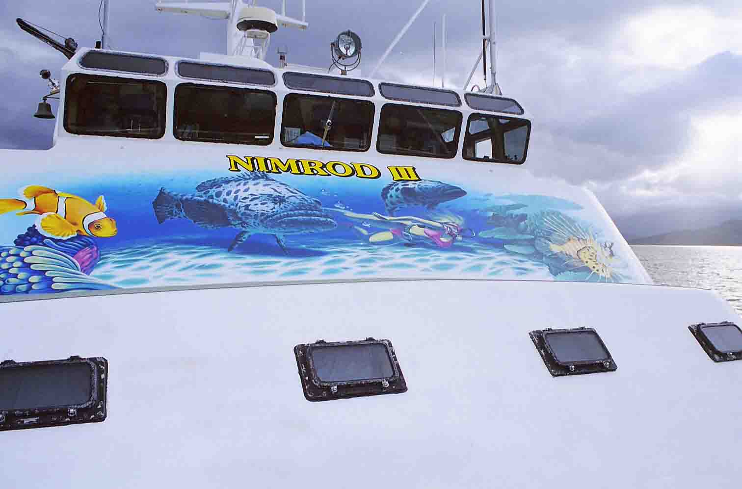 The bus took us to The Nimrod III, where we boarded the boat and listened to the skipper's briefing as our bags were loaded. Here's the scoop on the crew: