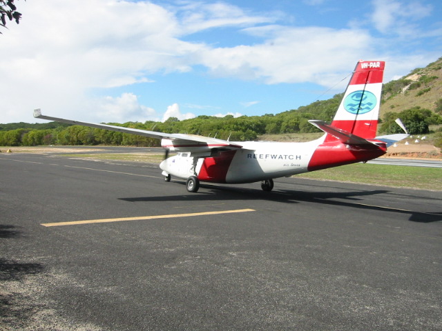 Around 8:30, we all loaded into the tender and road to Lizard Island. There, we hung out in the shade of the "Marlin Bar" until our plane arrived. We walked up the road to the landing strip and waited in "airport" for the plane. The "airport" was just a hut on the side of a small landing strip.