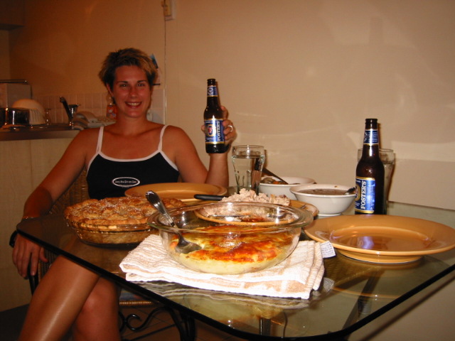 But before we cooked, we went to K-Mart and the Big W (Australian for Wal-Mart type of place) because we needed navy shorts for our work uniforms. There, we fought our way through THRONGS of last minute Christmas shoppers (did I mention we finished our shopping in August?) to get the little things we needed. Jon found his shorts at K-Mart and I got mine at the Big W.