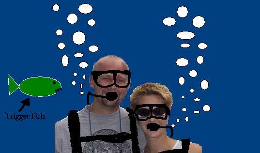 Trigger Fish Attack #1: During the surface interval, Jon and Aaron told me that a trigger fish had charged me after I'd past it. I hadn't seen it because it came swimming out of rocks behind me. It bit at my fins and then swam away. I vaguely remember feeling something at my fins, but just assumed it was some coral or another diver.