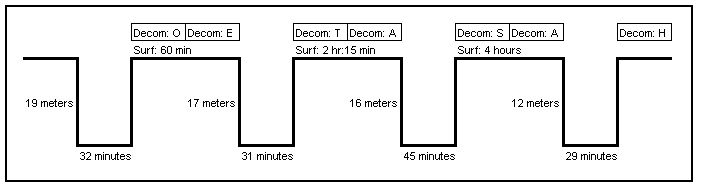In the morning, Jon asked me how I was feeling and I said that I didn't feel well, but that I wasn't sure if this was because of the bad night's sleep or not. We decided that I should take the day off from diving, and that we would go down to the office to use the Ban's Dive Wheel to calculate my decompression groups. Jon - I'm sure - was secretly thinking "What the hell am I going to do with this woman?". So I sat and calculated my decompression groups and came up with this: