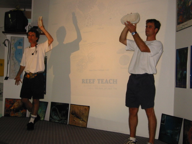 Reef Teach is taught by a crazy Irishman named Paddy Colwell. I've met him a few times when he's brought his "naturalist dive course" students on Sea Quest. And while I say that he's crazy because of his very charismatic personality, he's also incredibly intelligent and knows more about the reef than anyone I've ever met. He founded Reef Teach in 1992 as a way to educate tourists about the reef that they are here to see. So he tailors his talk to snorkelers and scuba divers.