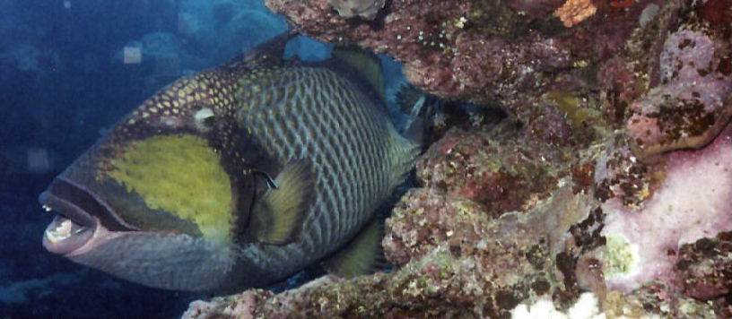 Yesterday, a diver on another company's boat was charged by a feisty trigger fish. Normally, this wouldn't be a big deal, but this trigger fish managed to get to her ear and cause enough damage that she needed six stitches. So Jason and I were particularly hesitant to stumble on any trigger fish today. Then we saw two MASSIVE trigger fish in the shallows of Shark Mountain. I mean, these were nuclear-sized trigger fish and we didn't stick around to measure them!