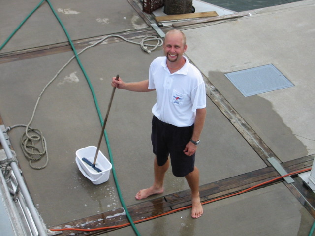 So once we got out of Cairns and finished the safety briefing, we made our way to the wheel house as we do on every trip. There were five us in there when Horst came in - a bit wide-eyed - and said, "Somebody lock the door!". We all laughed because we knew exactly what he was talking about.