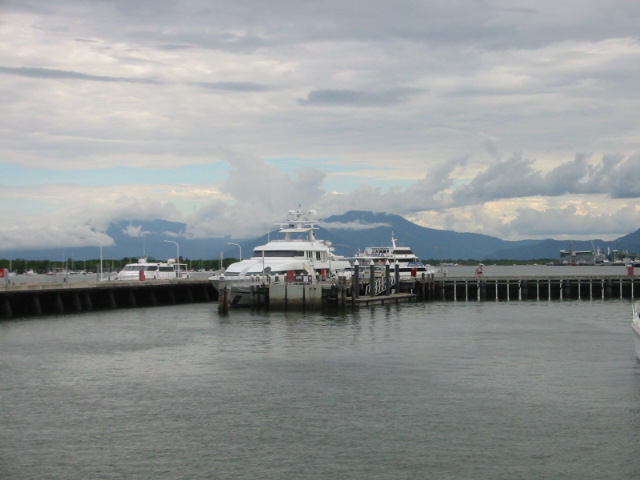 Now, if you're observant, then you've noticed the lovely clouds in the picture. But I'm sure that - instead - your attention was drawn to gorgeous yacht parked on the dock. This yacht The Ultimate has been there for a good month now and is HUGE!!! Those two satellite dishes are enough to power an entire cable network! Burkie "reckons" that it runs about $40million Aussie dollars.
