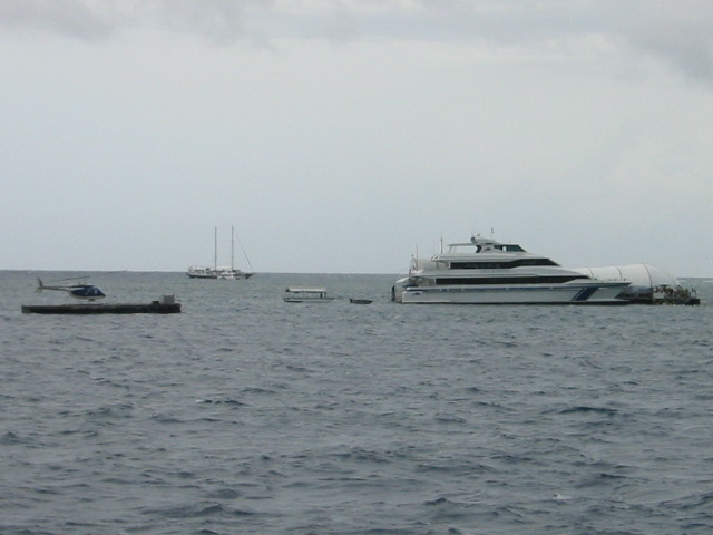 The other permanent structure is a large square platform that I've never seen used before. Today, however, I realized what its purpose was. A helicopter came flying around the reef and landed on the platform, letting out some divers for what was obviously a high-priced dive.