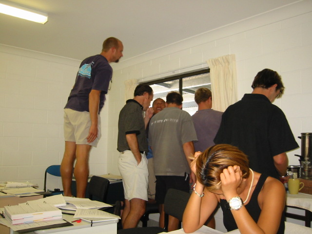 This morning, we had lectures on teaching Open Water sessions. In PADI Diving Courses, there are basically three teaching sessions: (1) Knowledge Development Lectures (classroom time), (2) Confined Water Sessions (skills practice in the pool), and (3) Open Water Sessions (skills practice in the ocean). We're being taught how to deliver all three successfully. The Open Water, of course, is the most crucial and potentially dangerous, so we'll spend a few days talking about it.
