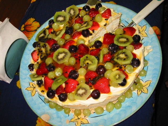 For dessert, we had a lovely angel cake with fresh fruit on it. It was delicious and I have no idea how Jenny whips out these glorious concoctions in that little kitchen! I suppose this means that I can't use the "too-small-kitchen" excuse for why I don't cook in NYC.
