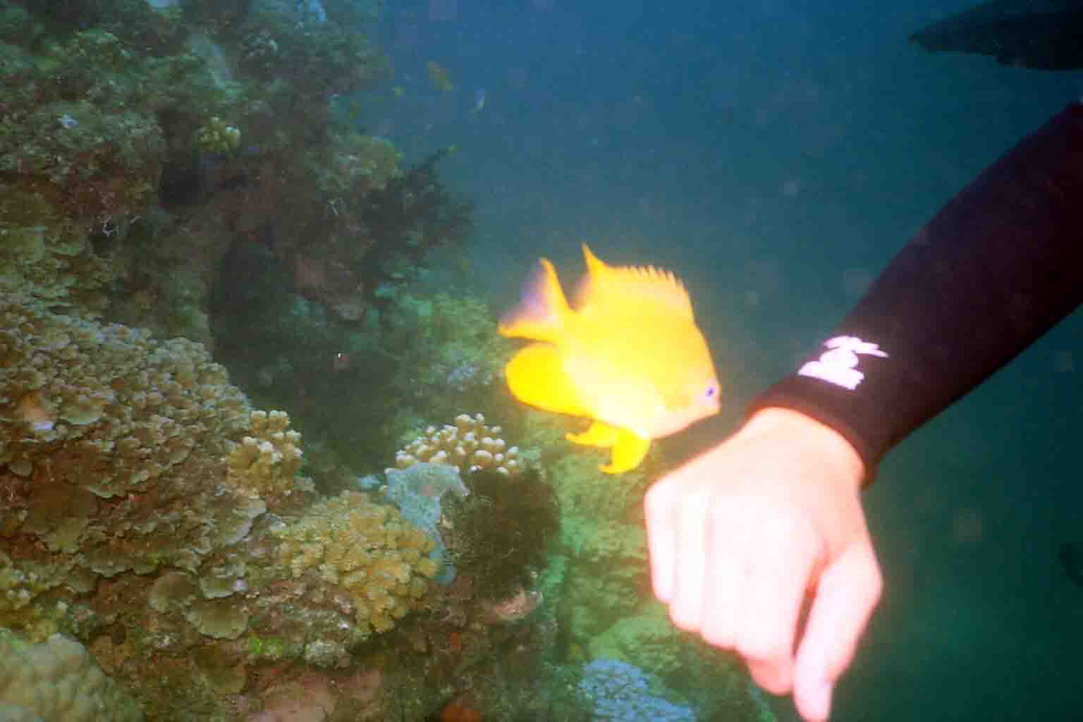 About the sleeping parrot fish, here's a little trivia for you. Parrot fish find a place on the sand beneath the reef to spend the night. They create a sort of "sleeping bag" from the mucus in their stomach and eject it to bubble around them and protect them while they sleep. But they can only do this once a night. So this is why - during our briefing - we were asked not to shine the flashlights directly at them. The light will frighten them and cause them to suck up the sleeping bag and swim away. Since they can't make the sleeping bag again, they can't go to sleep. John the instructor likened it to "someone waking you up at 2:00AM and then keeping you awake for the rest of the night".