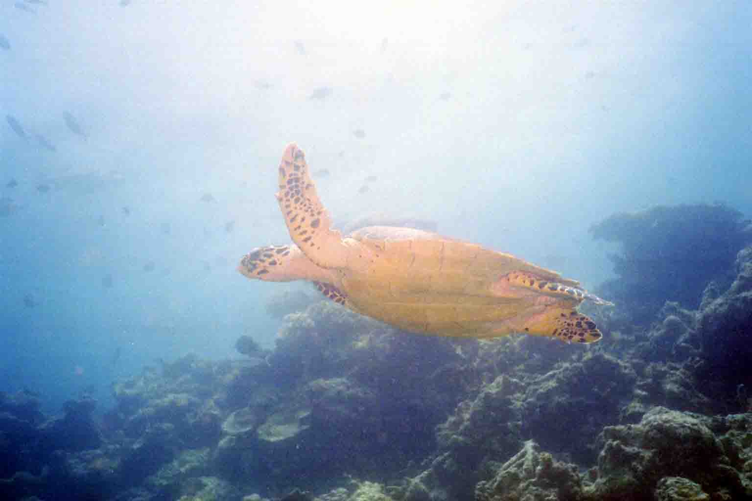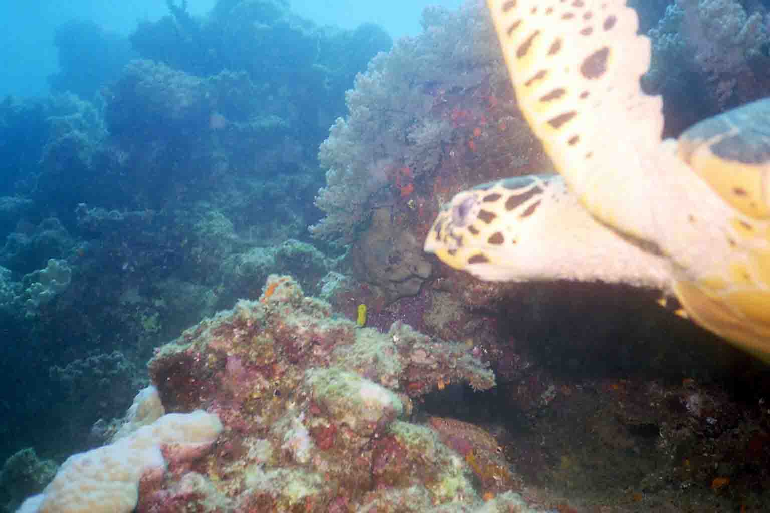 This next dive was a lovely one, which many anemone fish and a medium-sized potato cod. We also ran into a Hawksbilled Turtle.