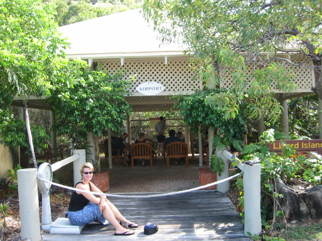 Around 8:30, we all loaded into the tender and road to Lizard Island. There, we hung out in the shade of the "Marlin Bar" until our plane arrived. We walked up the road to the landing strip and waited in "airport" for the plane. The "airport" was just a hut on the side of a small landing strip.
