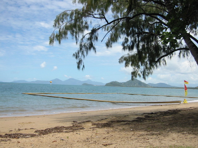 It's box jellyfish season, which is wreaking havoc on Queensland's tourism industry. Every beach has a "Stinger-safe" area that's netted off from the rest of the water. The nets protect from the very serious and painful box jellyfish, which grow in the rivers and swim out along the shoreline this time every year. Unfortunately, they don't protect from the deadly Irukandji Jellyfish, which are about the size of your thumbnail. They're quite rare, but they are about and every once in a while the news will carry an article about someone suffering from an Irukandji attack. Such a drag for such a beautiful country.