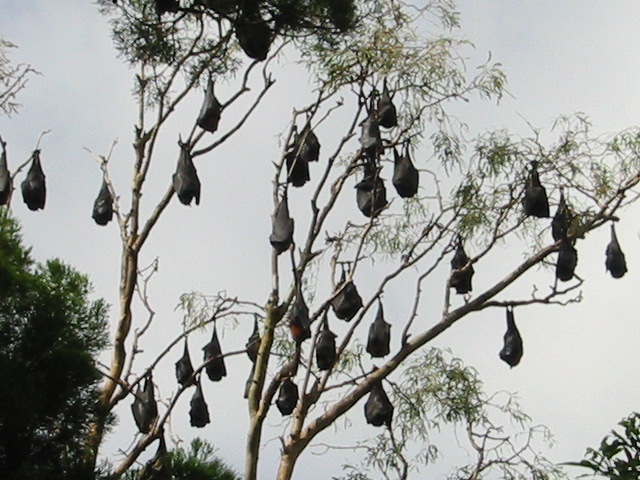 He wasn't kidding! The bats were the biggest I'd ever seen, and the sound of them as they hung from the branches was deafening. He said he ran by the area and had to turn around and get closer to find out what all the noise was about.