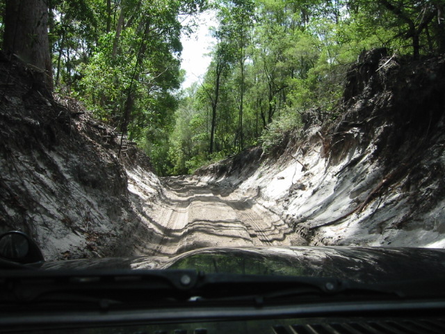 Jon mentioned at one point - when he stopped smiling long enough to talk - that the paths were much like the go-cart tracks at Disney World. Because of the way 4WD tires have formed the paths, the center is filled with sand and the tracks on either side are worn deep. So on softer parts, he could let go of the steering wheel and let the path lead the truck. He kept chuckling and said, "This is just like Disney World!".