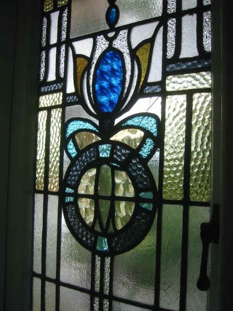 The windows in the back were colored green and red, and the windows in their bedroom were a beautiful stained glass.