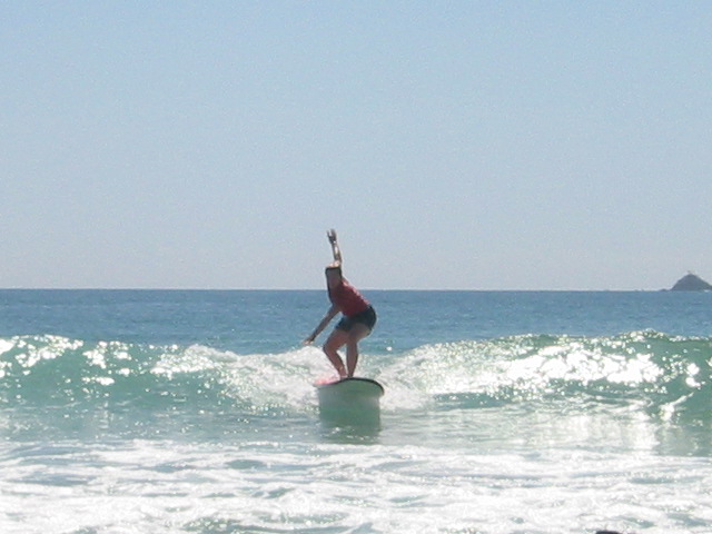 We rang Bruce the mechanic and found that he needed one more day, so we don't have to return to Brissie until Wednesday. We paid for one more day in the apartment and went to "The Gossip Shop" to get on the Internet and book a sea kayaking trip for tomorrow. But when we got there, we told Yannika how much fun we had at our surfing lesson. So Jon and I looked at each other and said, "Forget sea kayaking. Let's surf again!". And just like that, we signed up for another lesson.