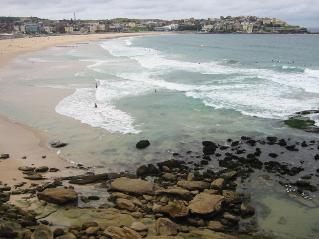Bondi Beach is east of Sydney and is considered a "Sydney Suburb". It's not far at all, but we figured we should take advantage of our last day with the truck and head out there. Today was pretty cloudy and windy, and almost cold, but it was time to heat the beach.