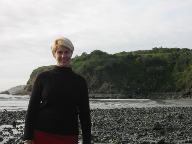 We were so charmed by the area that we decided to stay the evening, even though it was only 3:00PM. The nearby RV Park looked very nice, and was right across the road from the beach. There were a few RVs in the site, but absolutely no tents. We had the entire back section of the campsite to ourselves. We set up our tent and stuff and then went for a walk on the beach. The rocky beach was in a little windy cove and we walked over to the cliffs until we couldn't go any further.