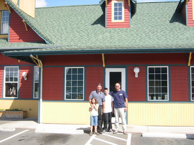 Jon's cousin Steve (brother of Rob of Dodger ticket fame) runs a restaurant here in Grant's Pass, and we'd arranged to meet then at their restaurant. Unfortunately, Jon got directions from Highway 5, and we were coming from Highway 199. So we drove aimlessly around Grant's Pass for a while before we wised up and asked directions at a gas station. Better late than never, we arrived at "The Train Depot" restaurant, where we met Steve, his wife Stephanie, and their kids Nick, Elena, and Sarah.