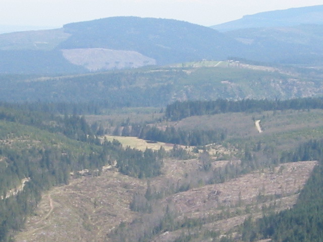The view of Puget Sound was a bit hazy, but not so much that we couldn't see the patches of emptiness left by the logging companies. Jon thought we should put a picture on the website to demonstrate the difference between the old growth and the newly logged areas.