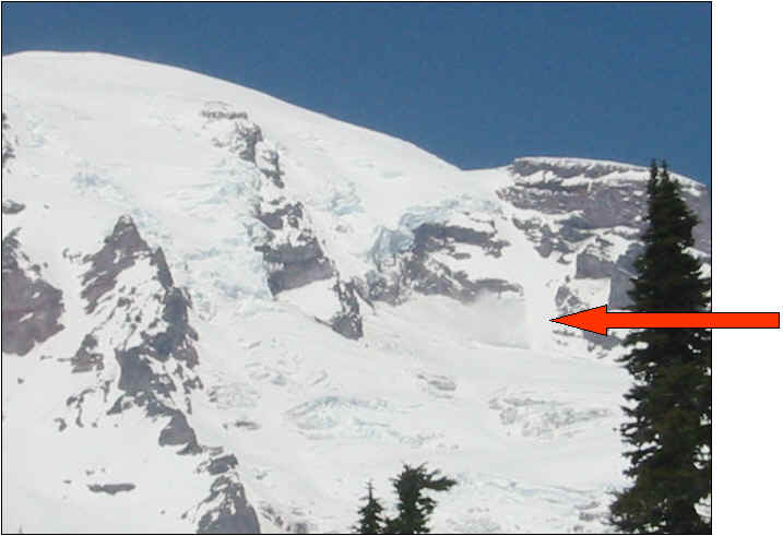 Avalanche On Mt Rainier (arrow points to snow cloud)