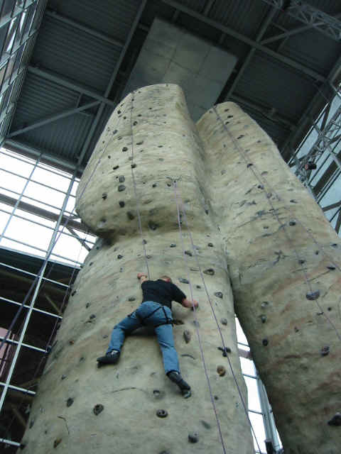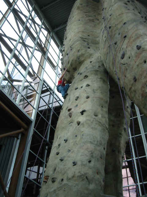 Then Jon went up and had a go at it. He was doing really well and made it past the difficult overhang about 2/3 up the wall when he decided to bag and come back down. This was actually a smart decision because he's running a marathon in three days and shouldn't be straining himself like this. Good choice.