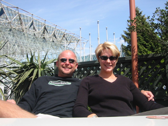 The goal for the day was to go to the marathon packet pickup and get Jon's race number and computer chip (the computer chip is tied to the shoe laces and registers each runner's time for the race as they pass over special computer mats along the course) for the Vancouver International Marathon. The only problem was that we didn't know where that would take place. We knew where the start and finish of the race was, and figured the packet pickup would take place somewhere around there. So we drove across the Cambie Bridge and near the Plaza of Nations. There, we saw some people walking with "Adidas" bags coming out of the building. So we figured we were in the right place and parked the car.