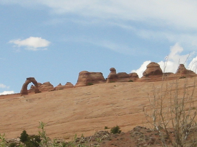 We drove to Delicate Arch on the east side, which is the "world's most photographed" arch. But since none of us felt like doing the mile hike to get there, we had to settle for a distance shot.