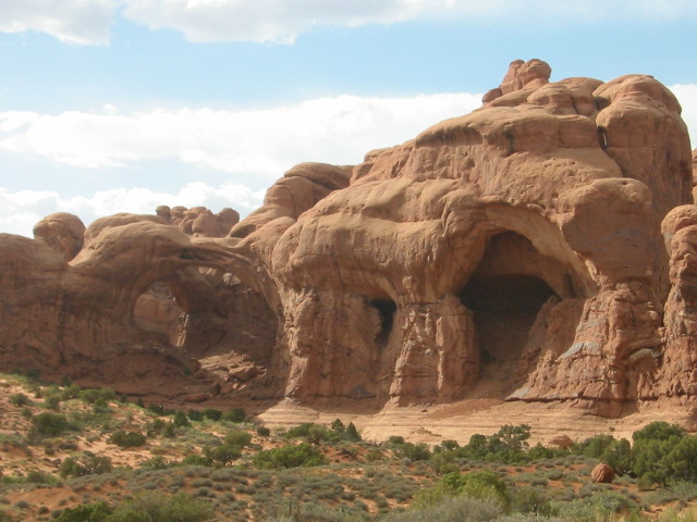 Arches has the largest collection of brilliantly colored stone arches in the country. According to our Arches National Park Map, "water and ice, extreme temperatures, and underground salt movement are responsible for the sculptured rock scenery of Arches National Park". There are more than 2000 arches cataloged here, ranging in size from a three foot opening to the longest one, which measures 306 feet base to base. (Landscape Arch). The park is 76,519 acres, which is a damn big park.