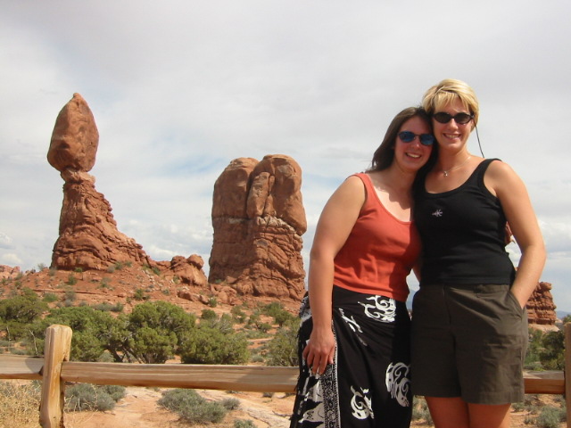 This morning, Jon went to a Laundromat to do laundry and to run some errands. I did research online for accommodations in Las Vegas, where we'll meet Ketron in June. Later - around 10:30 - we packed up our car and Heather's 4-Runner and headed out to Moab. Jon was driving by himself and I rode shotgun with Heather. The drive to Moab takes about three and a half hours, so Jon had the MP3 players to entertain himself. Heather and I, however, had much more fun with our ABBA Dance Party.