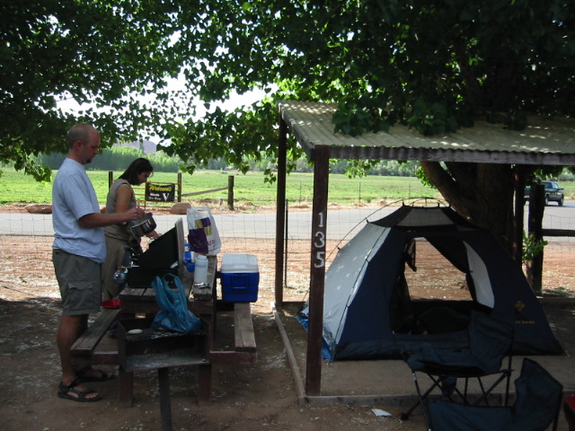 Jon made us chocolate chip pancakes for breakfast this morning and they were really, really good. Heather and I washed the dishes while Jon disassembled our tent. Then, we were off to Canyonlands.