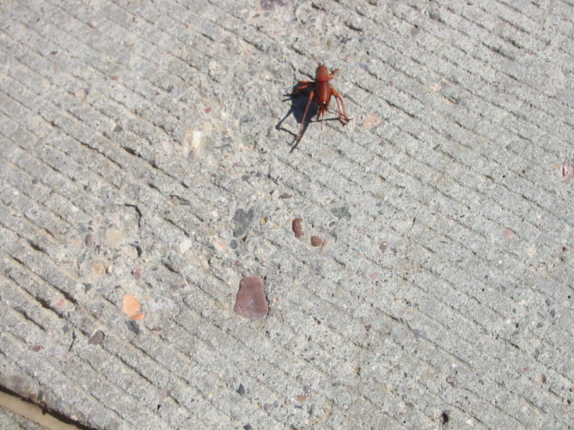 So for most of the day, we drove across Utah and into Colorado. At one point in a green part of Utah, Jon saw a bunch of little things on the road - and they were moving! So we pulled over to investigate and found that it was a whole swarm of large red grasshoppers!
