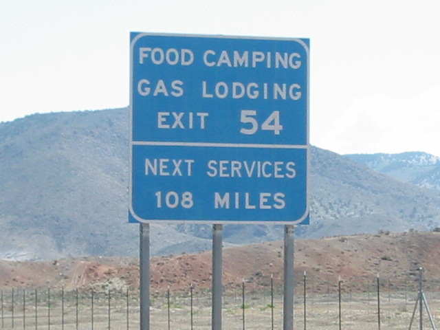 We've been on this stretch of Utah I-70 before. In fact, this is the same road we took to Moab with my sister. The last time we drove west and passed a sign that read "No Services for the Next 100 Miles". This sign was about a mile after a major gas station. Not before - AFTER. We found that endlessly amusing and wished we'd taken a picture of it. So this time we did get a picture, only the highway services department obviously cares about people heading East on I-70, because they warned us before a gas station.