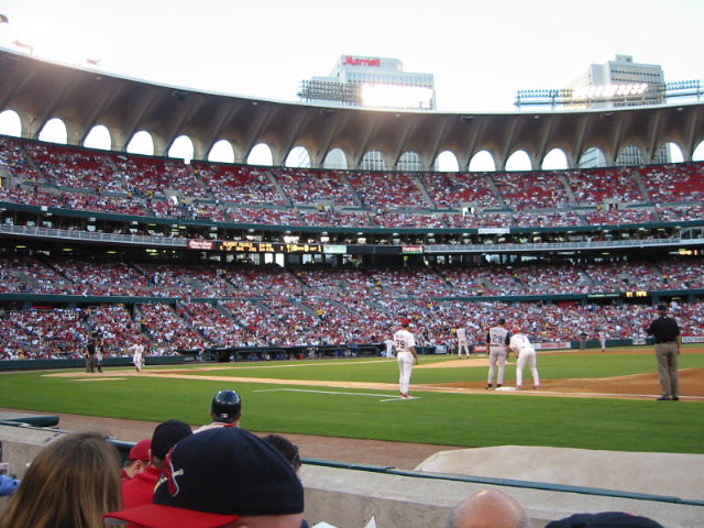 Our seats were absolutely incredible!!! They were "dugout" seats, about 30 feet to the right of the the Cardinal's dugout and three rows back.