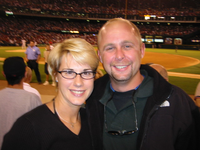 I told Jon that I could become a serious Cardinals fans for these seats alone! We had such a great time at the game. The fans were terrific and nutty and zealous and wonderful. The Cardinals won (of course) and that made the game even better. The Cardinals' pitcher, Morris, went eight innings and threw a two-hitter, so of course the fans went crazy. Baseball is such a terrific way to spend an evening!