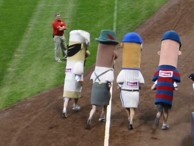 And when the Astros switched pitchers, a man came out on a Harley and rode around the field. Why? We still don't know. Nor do we know why the four Wieners came out and did a race around the front of the field. But I have to admit it was pretty funny.