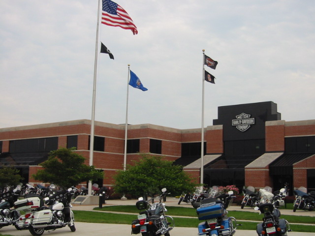 This is Harley Davidson Powertrain Assembly Plant. Here they build new and remanufactured engines for Harley Davidson motorcycles. As we pulled into the parking lot, one can't help but notice the abundance of Harleys parked out front in the special "motorcycle" parking spaces. Those of us mortals who drive cars had to hike a bit further from the car parking lot.