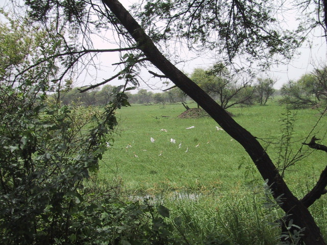 After a few hours, Vinod stopped so we could get breakfast. We stopped at a large hotel - still in Rhajastan - that was clearly built for the bird-watching community. It was very expansive, with fountains and benches and situated very happily on lake. The only problem is that there was no one there! It was just us and the staff. Winter is world-class birdwatching time in India, but there isn't that much to see in the summer. So here we were, in this large beautiful hotel that was completely deserted. We felt like Jack Nicholson should come running around the corner with an ax yelling, "Heeeeeere's Johnny!"