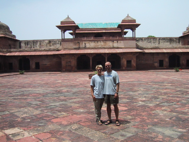 Next to the city is a HUGE mosque called Jama Masjid and also known as Dargah Mosque. It has some very impressive gates and a lovely view over Fatephur Sikri. It also has a very large courtyard (at least one football field) that separates the gates and the mosques. We made our way to the other side of the courtyard by walking along the perimeter in the shade, but we were running late by this time. So we had to hurry across the courtyard to the main gate. Of course, we had taken off our shoes because we were in a mosque and the red sandstone of the courtyard had been in the sun all day. So we started walking... and then skipping.. and then running across the courtyard on feet that were burning. But we made it out safely.