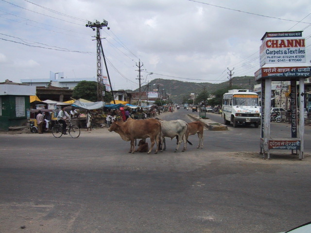 We had a long discussion over dinner one night regarding a particular cow that - after finishing his dinner in a garbage pile on the side of the road - walked to the middle of the road and proceeded to walk up the center line. Cars were whizzing by on both sides of him, but he didn't seem to mind. Jon thought this was a stupid cow, and that it should have walked along the side of the road. I thought that the cow was actually very smart - it knew it wouldn't be injured along the center line. We'll let you decide. Regardless, Vinod said that the cows are a real concern for drivers because - if you hit them - it will cause serious car troubles, which the driver has to pay for as well as having to compensate the owner of the cow for their loss.