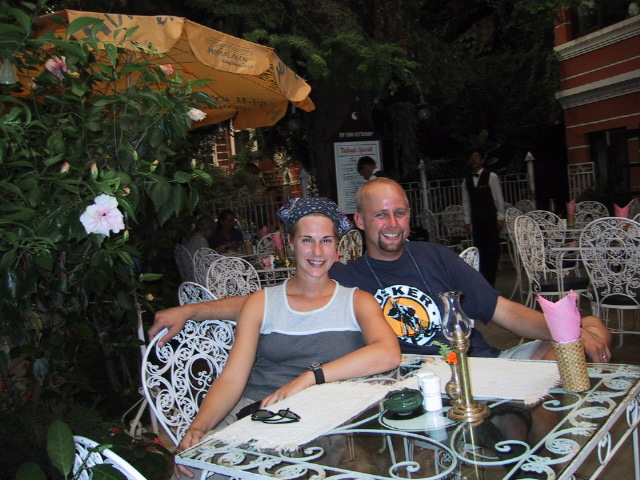 Dinner was at a precious Thai restaurant called Ying Yang. We ate outside at a wrought-iron table beneath trees with little lights strung all over them. There was a CD store across the way playing some pleasant music and - for the first time in weeks - we had a beer! We were SO happy. Dinner was delicious and the staff was very, very nice. Nomaste!