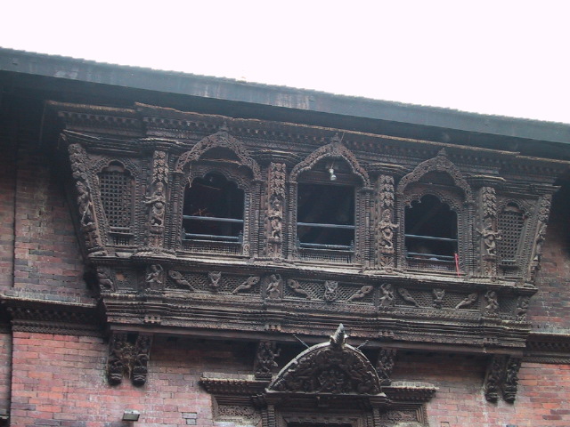 Also in Durbar Square, the most interesting part of the day was a visit to the Kumari Bahal to visit the Kumari Devi - Nepal's living goddess. She is a newly selected Goddess as of two months ago and is only 4 years old. She can come to the window once a day to look out into her courtyard. So we went into the courtyard and looked up at the window and waited for her to appear. We were not allowed to take photos of her, but we could take pictures of the window and the courtyard, which is actually beautiful in and of itself because all the carvings are entirely of wood.