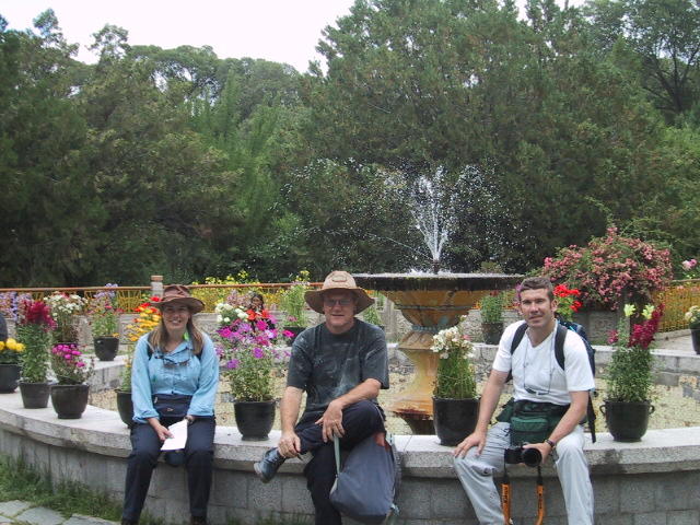 Laura, John, and Mark in the gardens of Norbulingka