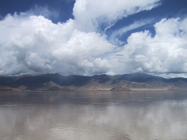 We drove for 2 hours back near the airport, where we turned and headed toward the river - Yarlung Tsangpo. The ferry compound had about 6-8 brick and mud buildings of various states of decay and only about 6 Tibetans milling about. The first "restaurant" (read: hut) didn't have any veggies so the group couldn't order lunch. But the 2nd restaurant did, so everyone put in their orders and the 6 Tibetans ran up and down the road with veggies and noodles. I had a piece of toast (a major accomplishment). Jon said that the noodle soup was very good until he found the dead fly on the bottom of it. Then he was done.