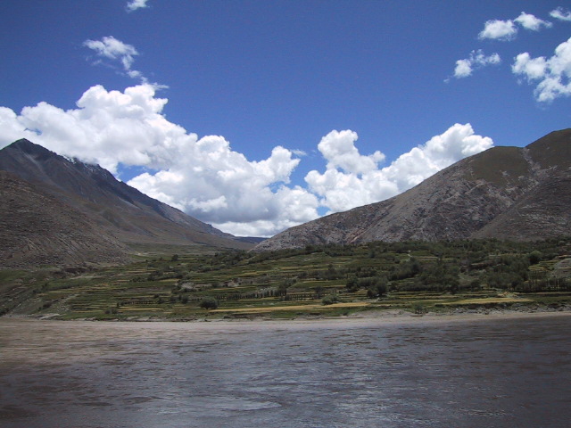 Jon had bought some prayer cards in Lhasa a few days ago, which are hundreds of little pieces of rice paper with Tibetan prayers and drawings on them. They're about 4 square inches and are made to be disposed of. So we took this opportunity to observe tradition and we threw them up in the air and watched them floating in the wind. They were four different colors: white, blue, yellow, and pink, and it was lovely to see our little mantras carried away by the breeze. Interestingly enough, it doesn't offend our Catholic upbringing at all to do this - we need all the help we can get!