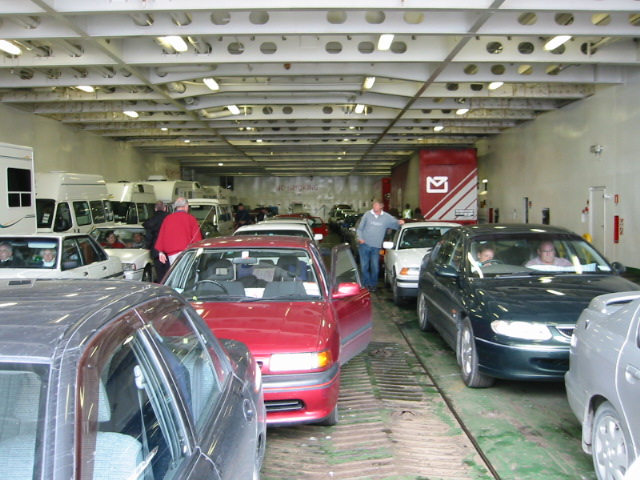 Our ferry to the North Island left at 10:00AM, but remember that this is a monopolistic business so all the work must be done by the customers. So we had to get there at 9:00 and wait for an hour for them to get their acts together and marshall us onto the ferry. Jon boarded with the passengers to get us a good seat near an electrical outlet for the laptop, and I drove the car on board.