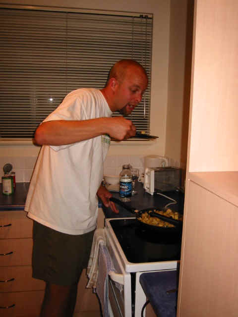 I called our new ISP (Internet Service Provider) to continue the setup from our apartment. Then we were online and SO HAPPY!! We spent the next few hours playing around on the Net and wasting time in general. Then, around 6:00PM, Jon started to make dinner.