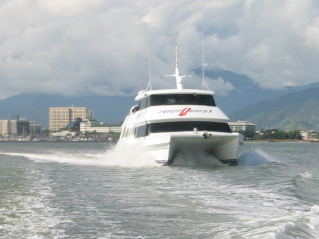 We left Cairns at the same time as Reef Quest did. Reef Quest is Deep Sea Diver's Den other day-tripper boat. And although Reef Quest is marketed toward the budget backpacker crowd, it's bigger, newer, and faster than our little Sea Quest. Of course, it holds a lot more people so the service isn't as good, but backpackers don't care about that stuff.