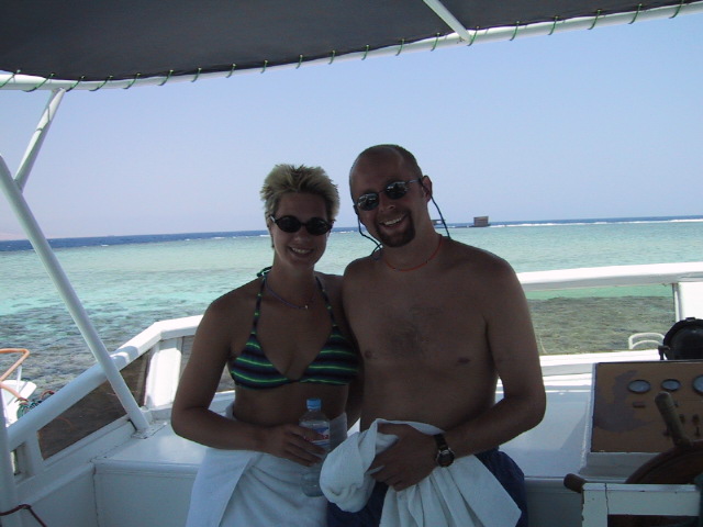 After we got back on land, Jon and I checked into the Camel Hotel and went for a quick dip in the pool. Then we showered and went out to meet our new friends Ian and Shelly for drinks. We sat at a bar on the beach and talked and laughed and had a very good time. The beers went straight to our heads because we were so exhausted and hungry. We left at 10:00 because we all have to get up early tomorrow to go to the Thistlegorm Wreck.